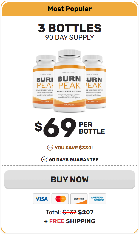 If you’re serious about achieving healthy, sustainable weight loss, the next step is simple: choose the package of Burn Peak that best fits your goals. Most people go for the 3- or 6-bottle bundles, since they ensure consistent use, maximize results, and come with the biggest savings.